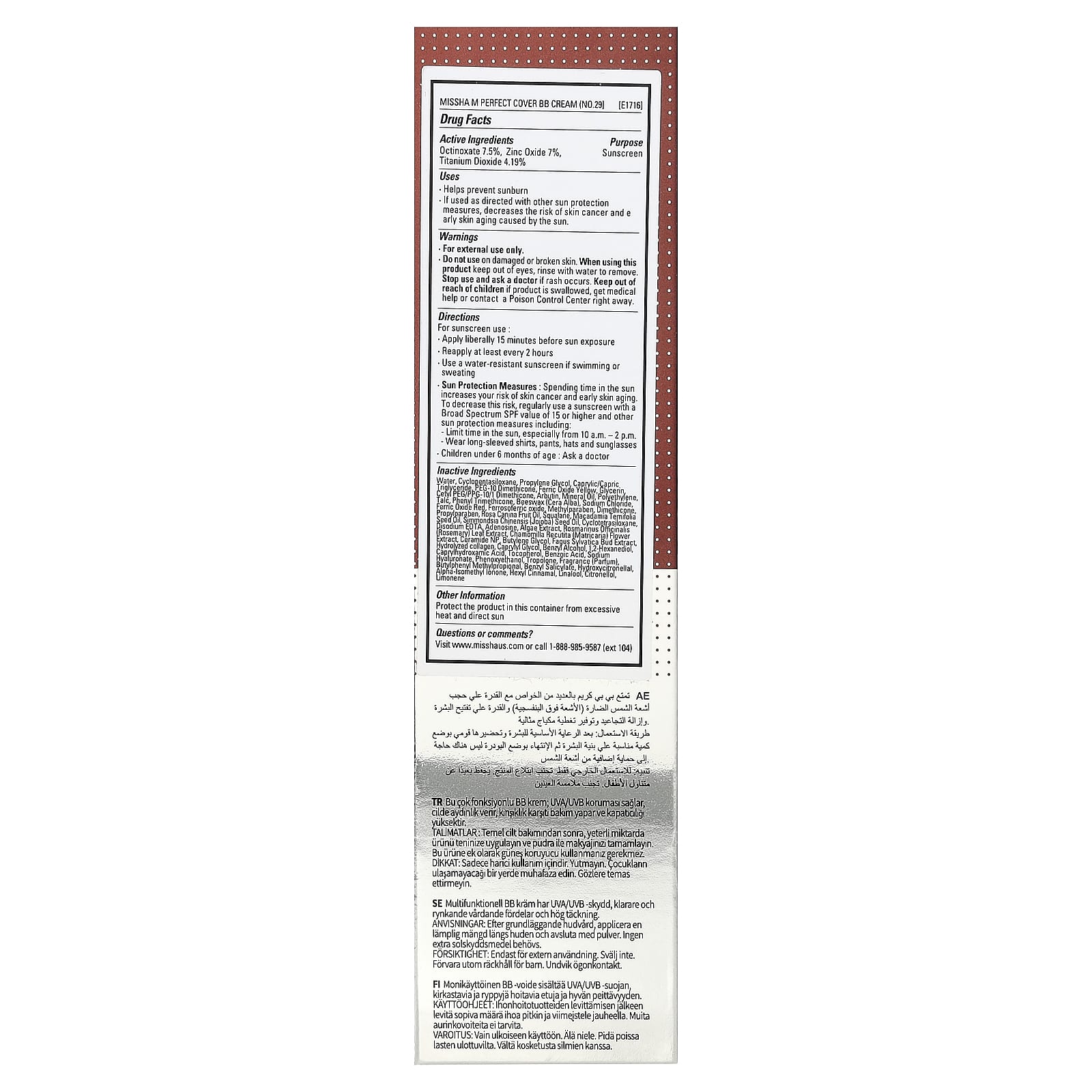 Missha M Perfect Cover BB Cream FPS 42 PA+++ N.º 29 Bege Caramelo 50 ml (169 fl oz) – Missha Beleza Maquiagem Rosto Cremes BB e CC BB e CC creams K-Beauty.