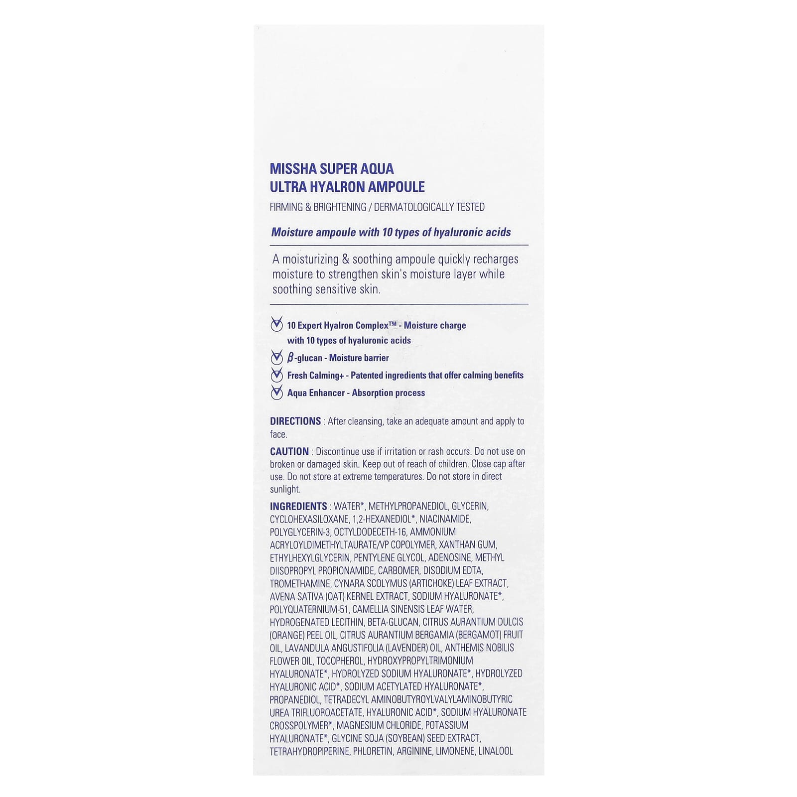 Missha Super Aqua Ampola Ultra Hyalron 47 ml (158 fl oz) – Missha Beleza Tratamentos e Séruns Séruns Faciais Séruns Antienvelhecimento e Firmadores Séruns antienvelhecimento e firmadores K-Beauty.