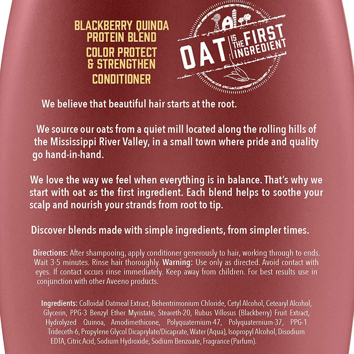 Acreditamos que um cabelo bonito começa na raiz. Suavize seu couro cabeludo enquanto ajuda a proteger seu cabelo, com este condicionador Blackberry Quinoa Protein Blend inspirado na fazenda até o banho. A aveia como primeiro ingrediente ajuda a promover um ambiente saudável no couro cabeludo. Enriquecida com proteína de amora e quinoa, essa mistura de condicionador ajuda a proteger os cabelos pintados de quebras e danos. A mistura de ingredientes trabalha em conjunto para produzir uma fragrância sensacional e fresca. Livre de sulfatos, parabenos e corantes, este produto é seguro para cabelos tingidos. Compramos nossa aveia em um moinho tranquilo localizado ao longo das colinas do Vale do Rio Mississippi, em uma pequena cidade onde orgulho e qualidade andam de mãos dadas. Adoramos a maneira como nos sentimos quando tudo está em equilíbrio. É por isso que começamos com a aveia como primeiro ingrediente. Cada mistura ajuda a acalmar o couro cabeludo e a nutrir os fios da raiz às pontas. Descubra misturas feitas com ingredientes simples, de tempos mais simples.
