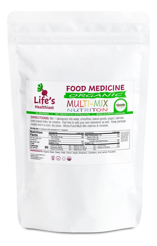 • Lifes Healthy Multi Mix Whole Food Therapy é uma mistura única de frutas e vegetais que suporta o poder antioxidante de combate aos radicais livres e contém algumas das frutas e vegetais mais densos em nutrientes da natureza para lhe dar o maior retorno para seus investimentos e o melhor impulso para seu saúde