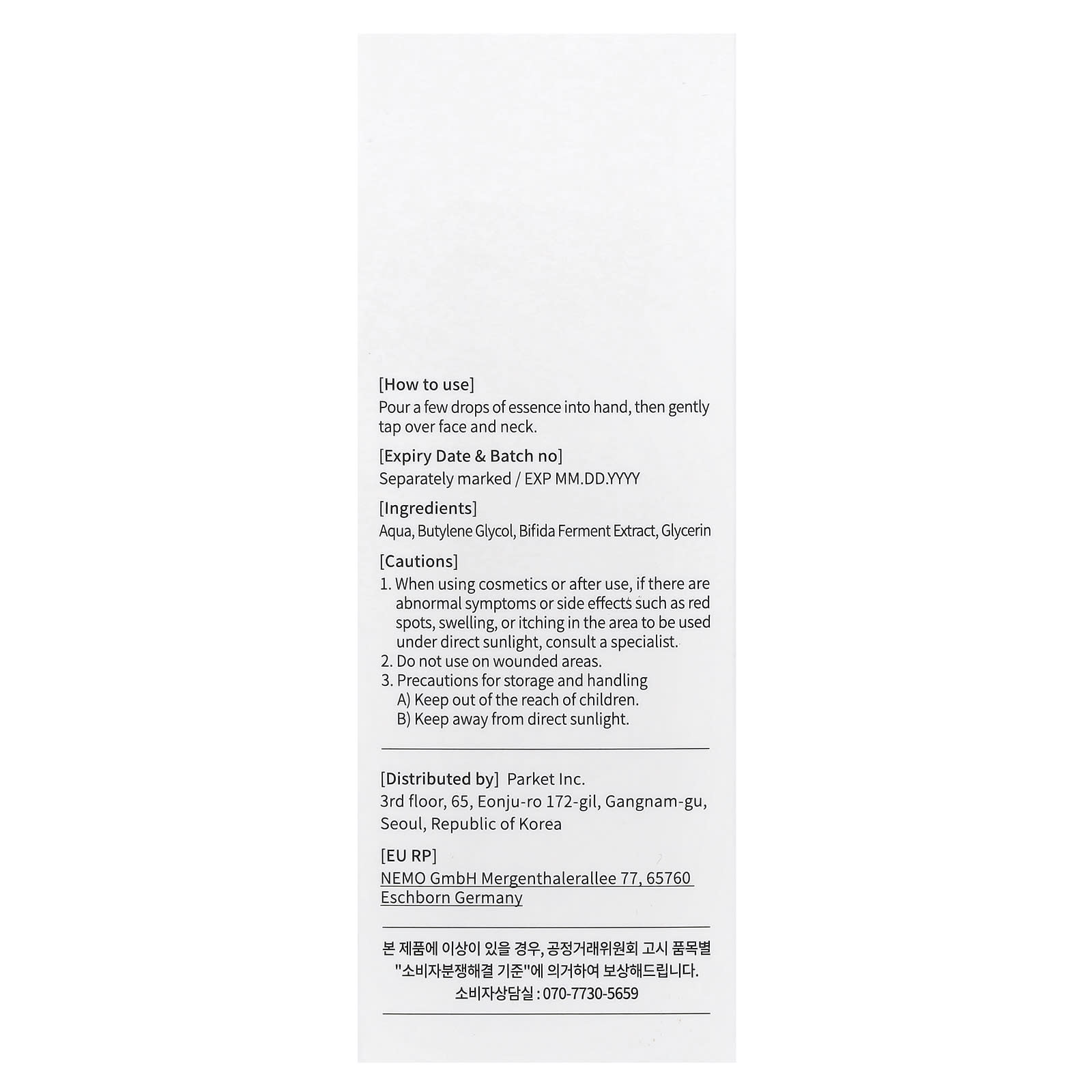 Aqua, butilenoglicol, extrato de fermento de bífida, glicerina.