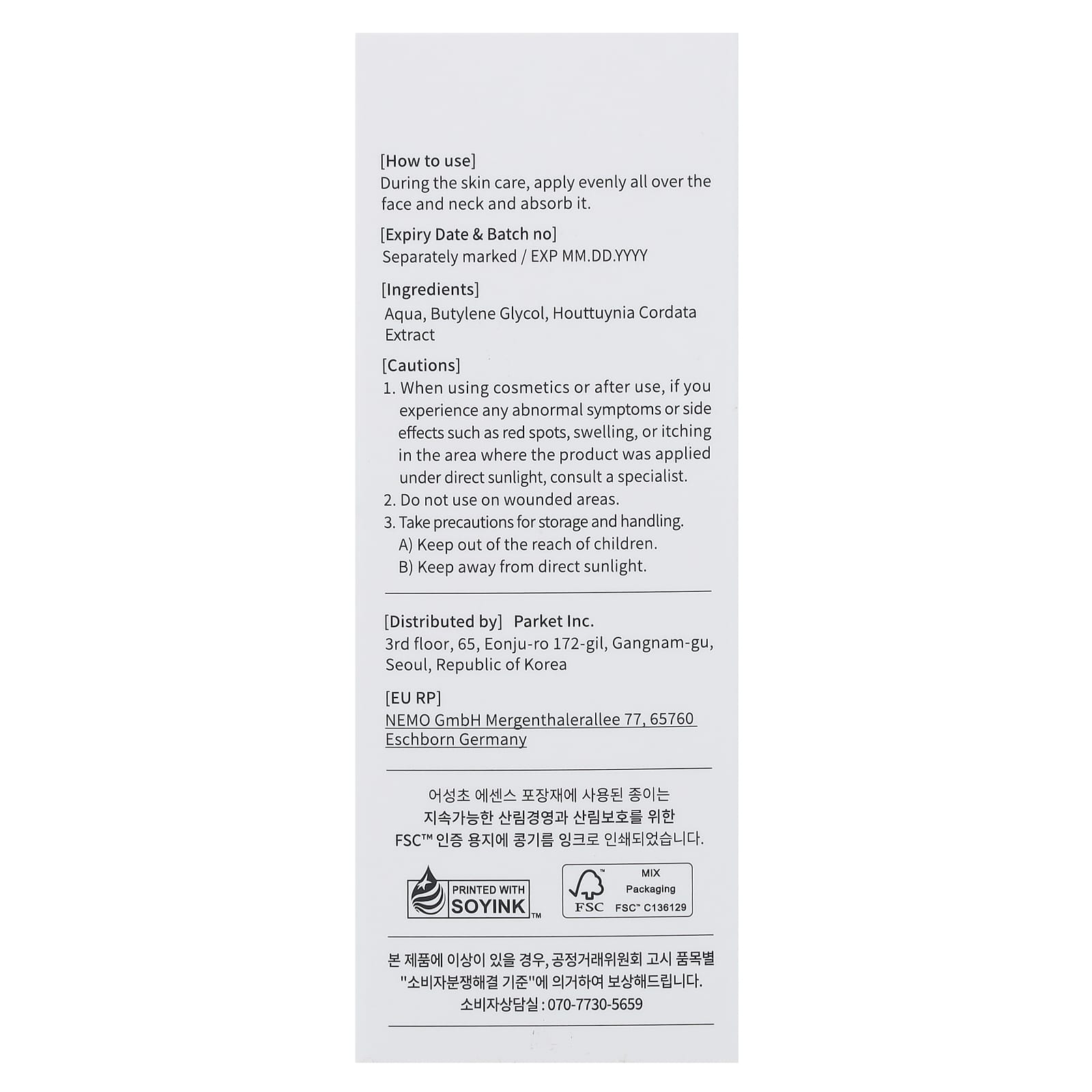 Aqua, butilenoglicol, extrato de Houttuynia cordata.