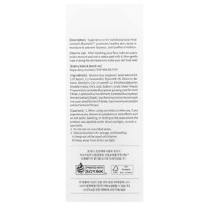Extrato da semente de Glicina max (soja) (93 ppm), 1,2-hexanediol, glycereth-26, glicerina, betaína, alantoína, c12-14 pareth-12, ethylhexylglycerin, edetato dissódico, ácido cítrico, citrato de sódio, água (aqua), propanediol, lactobacillus/filtrado de fermentação da raiz de Panax ginseng, lactobacillus/fermento de arroz, extrato de fermentação de soja/lactobacillus (20ppb), filtrado de fermentação da semente de ma-yuen/Saccharomyces/coix lacryma-jobi, filtrado de fermentação do extrato de batata/extrato de saccharomyces.