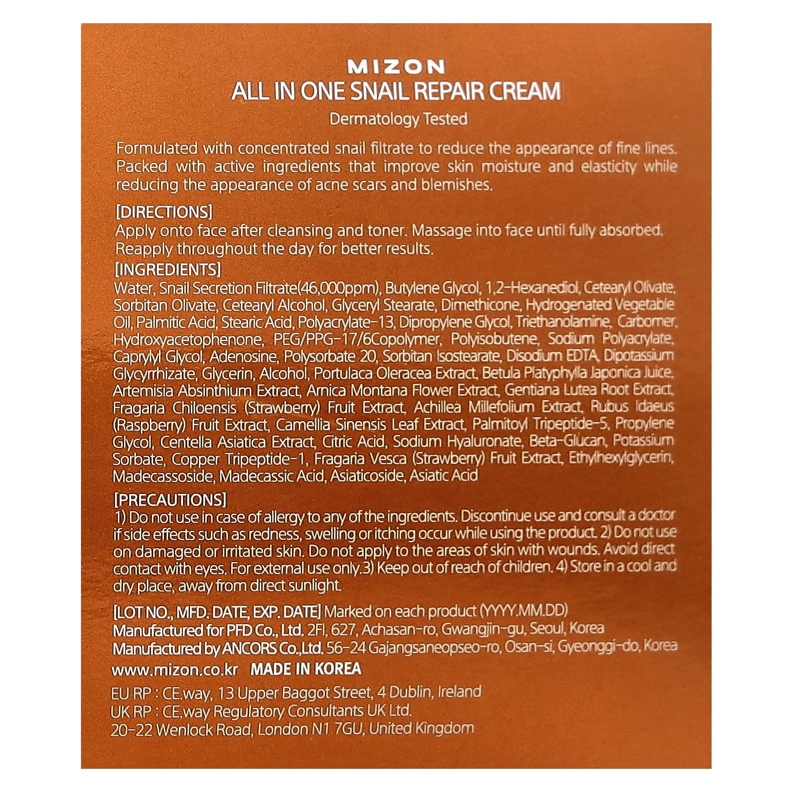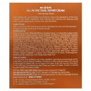Mizon Creme Reparador de Caracol All In One 75 ml (253 fl oz) – Mizon Beleza Beleza por Ingrediente Cuidado para a pele com Caracol Hidratantes Faciais e Cremes Hidratantes e Cremes K-Beauty.