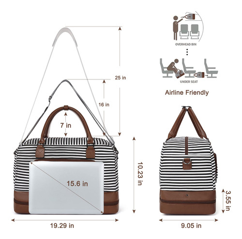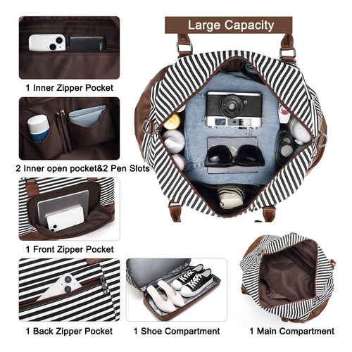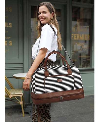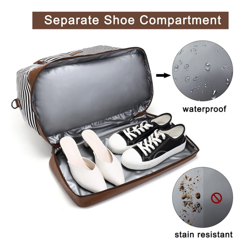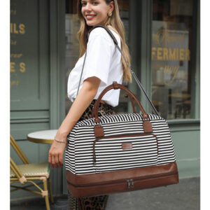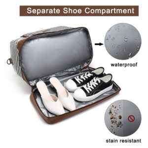Weekender Bag Women Leather Overnight Carry on Travel Duffel Bags with Shoe Compartment – Durable Material: CLUCI weekender bags for women are made of durable canvas and scratch-resistant vegan leather material. The duffle bag also comes with a vintage bronze zipper and 4-foot rivets to prevent scratches on the bottom. – Large Capacity: The travel bags for women have 1 main compartment, 2 inner open pockets, 2 pen slots, 1 inner zipper pocket, 1 front pocket, 1 back pocket, 1 separate shoe compartment. There is enough space for you to store clothes while also organizing your small items. – Meet Flight Requirements: Size: 19.29(L)x9.05(W)x10.23(H) Weight: 1.37kg/3.02lb. Adjustable shoulder strap height: 16-25in. The size of the carry on bags for airplanes complies with the flight regulations for carrying luggage. You can secure your duffle bag on the luggage rack or seat. – Separate Shoes Compartment: The separate bottom shoe compartment features waterproof material. This overnight bag for women not only stores your shoes, but also separates your dirty shoes or wet clothes with clean necessities. – After-Sale ServiceWe are committed to providing each customer with the highest standard of customer service and top quality goods, if you are not satisfied with our product or service for any reason, please feel free to contact us by email.