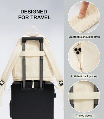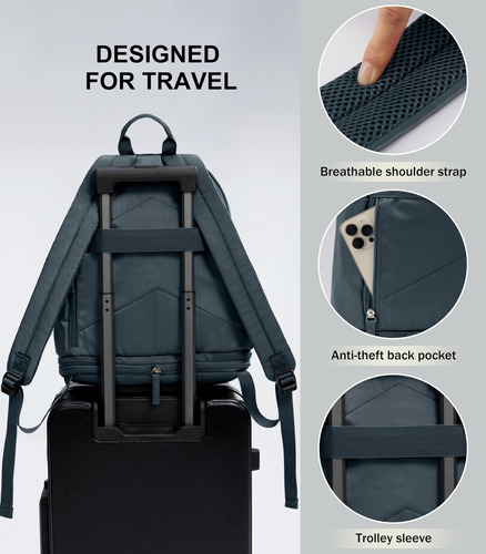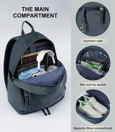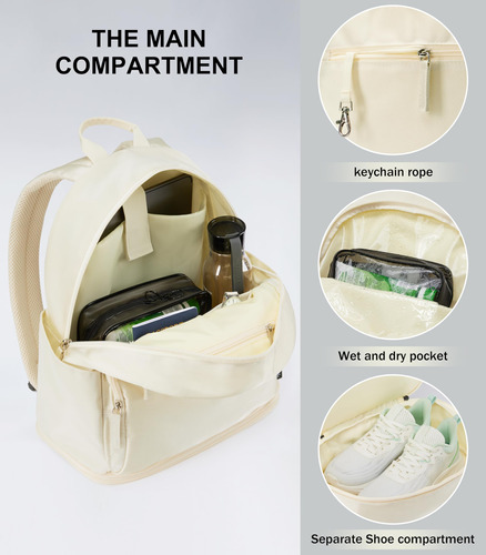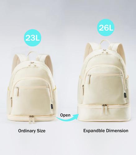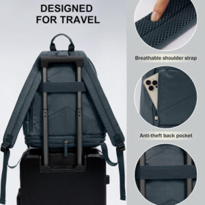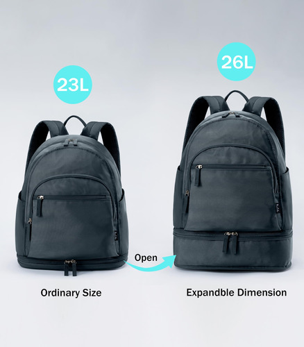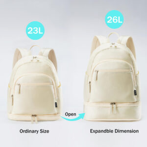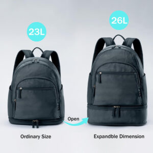 Uselike Gym Backpack for Women Small Gym bag with Expandable Shoe Compartment Water Resistant Sports Backpack 26L – Organized Multiple Pockets: This lightweight backpack helps you stay organized with an interior compartment for a 13-inch laptop, two mesh pockets, and a zippered pocket. The outside of the bag has a large wet/dry compartment, as well as a front zippered pocket with a keychain cord. – Expandable Shoe Compartment: The bottom shoe compartment of this gym bag is an expandable design, when you need it can be used as a separate shoe compartment. When folded, it can also be used as a stylish daily casual backpack. – Waterproof and Wrinkle-Resistant Fabric: This casual backpack is made of high-quality polyester fabric that is soft and smooth, wrinkle and water-resistant, making the bag strong and structured. It gives you comfort and peace of mind for your daily use. – Safe and Convenient: The travel backpack has an anti-theft pocket on the back to keep your phone and wallet safe. The trolley sleeve works with luggage to make traveling more convenient. – Wide Application: If youre looking for a functional and stylish backpack, you honestly can just stop reading this product description now because congratulations youve found it. You can use this as a gym bag or as a carry-on, this is the ideal backpack for work or daily use.