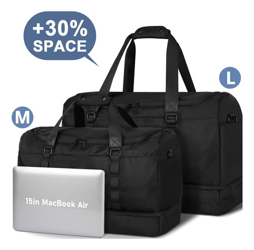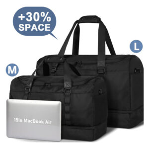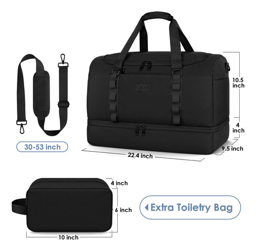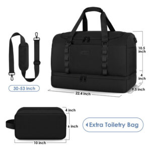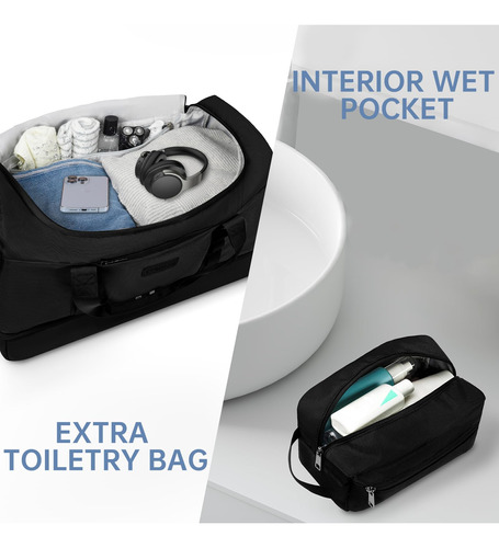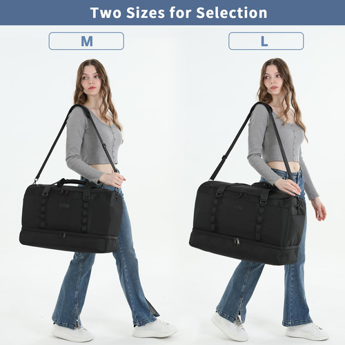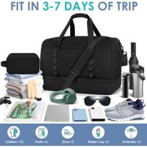 Mochila – Grande capacidade e leve: a mochila tem 22,4 x 9,5 x 14,5 polegadas, a capacidade é de cerca de 55 L e pode caber em uma viagem de longa duração de 3 a 7 dias com itens essenciais diários. A bolsa de viagem é feita de tecido leve e resistente à água de alta qualidade. Pesa apenas 1,8 libras, é conveniente para viajar e transportar. – Separação seca e úmida: a bolsa de ginástica com um bolso forrado de PVC à prova d'água com zíper para roupas molhadas, toalhas e roupa de banho pode manter a bolsa limpa e não se molhar. E a bolsa de higiene pode ser colocada em seus produtos de higiene pessoal, cosméticos, lâminas de barbear, etc. Fácil de guardar e organizar. – Compartimento separado para sapatos: a bolsa de fim de semana tem uma cabine de sapatos independente, que pode acomodar 2 pares de sapatos masculinos ou roupas sujas e saídas de ar para dispersar o mau cheiro. Pode ajudá-lo a evitar sujar outras roupas ao embalar, além de proporcionar mais conveniência para sua viagem. – Vários tamanhos para seleção: fornecemos 3 tamanhos para você escolher para atender às suas necessidades em diferentes cenários; a versão maior aumentou o espaço em 30%, pode acomodar as necessidades de viagem pessoal de 3 a 7 dias e é mais adequada para viagens de longo prazo ou atividades com várias pessoas. Esta mochila pode resolver a preocupação de muitos itens de viagem. – Bolsa de pernoite versátil: se você está indo para a academia, planejando uma escapadela de fim de semana ou fazendo uma viagem de negócios, é ideal para diversos fins. Esta bolsa multiuso pode ser usada como bolsa de ginástica, bagagem de mão para voos, bolsa esportiva, bolsa de fim de semana, bolsa de hospital ou uma elegante companheira de praia.