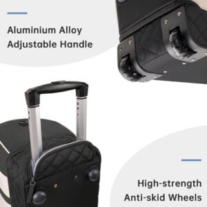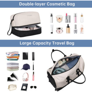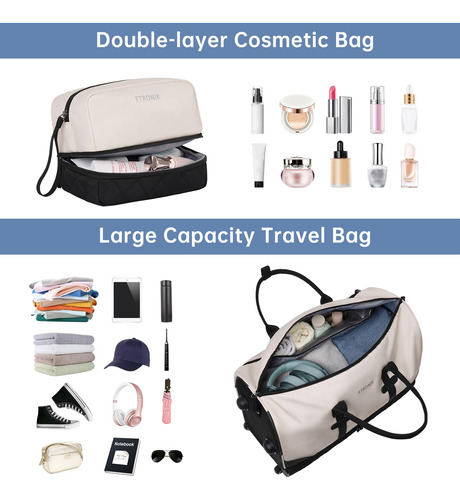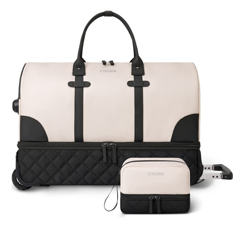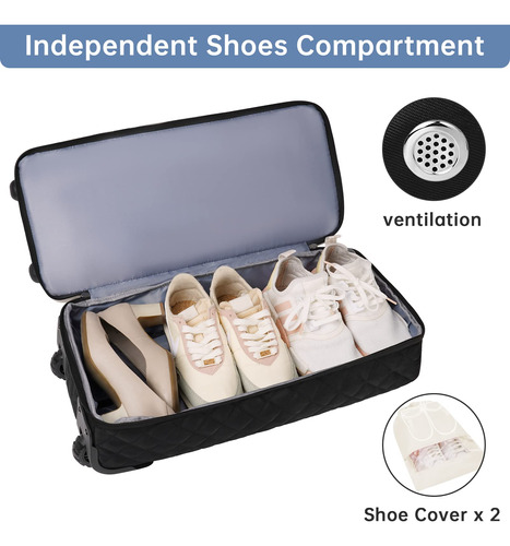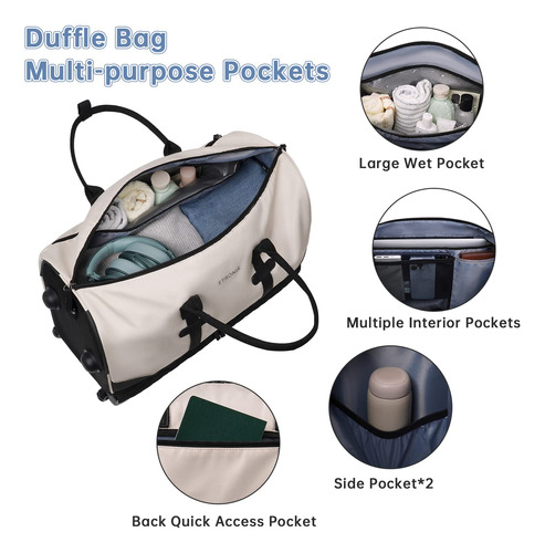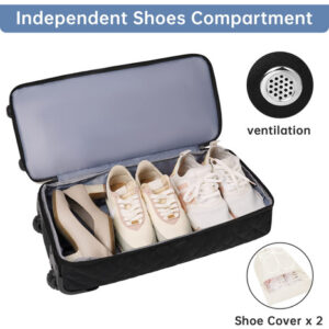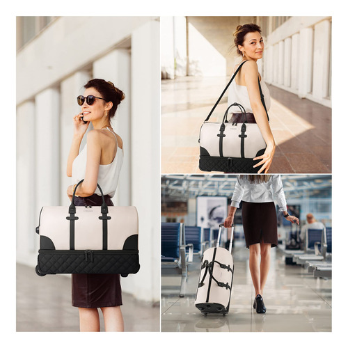 Mochila para viajar com bolsa de higiene, bagagem de mão, malas de viagem para mulheres com compartimento para sapatos — Bolsa rolante de fim de semana atualizada: a bolsa de viagem com rodinhas equipada com haste de liga de alumínio e rodas de borracha antiderrapante oferece uma maneira mais conveniente de viajar de fim de semana e durante a noite. Você pode usá-la como sacola de mão ou bolsa com rodas. O espaço de grande capacidade é adequado para viagens em família ou de 4 a 7 dias. – Compartimento separado para sapatos: a mochila de mão com rodas tem uma grande cabine de sapatos independente, que pode acomodar de 3 a 4 pares de sapatos ou roupas sujas e saídas de ar para dispersar o mau cheiro dos sapatos. 2 bolsas extras são fornecidas para facilitar o transporte e separadas das roupas limpas. – Separada a seco e úmida: esta mochila para mulheres tem um grande bolso forrado de PVC à prova d'água feito de material resistente à água de alta densidade, para roupas molhadas ou toalhas e roupas de banho. Além disso, uma elegante bolsa de lavagem de camada dupla será o que você precisa. Você pode usá-la para transportar escova de dentes, pasta de dente, limpador facial e outros produtos de higiene pessoal e cosméticos necessários. – Mochila de ampla aplicação: se você está procurando uma bolsa de viagem prática, seria uma ótima opção. O nylon resistente à água garante a qualidade do produto; a haste e o ombro removível fornecem uma variedade de métodos de transporte e reduzem a pressão durante a viagem. Use-o como bolsa de ginástica, bolsa de viagem de avião, bolsa esportiva, bolsa de fim de semana, bolsa de mão, bolsa de hospital ou bolsa de praia. Idade: mais de 12 anos. – Garantia de um ano: se você tiver algum problema de qualidade com a mala de viagem, entre em contato com o suporte ao vendedor. Trocaremos ou forneceremos outras soluções.
