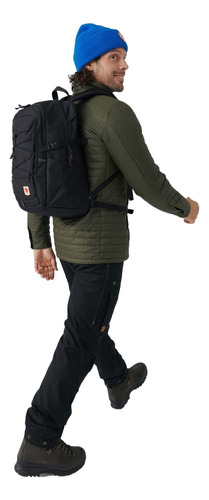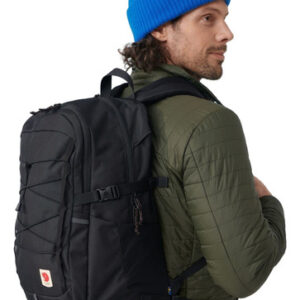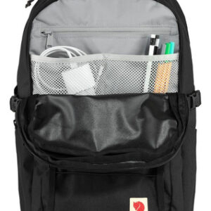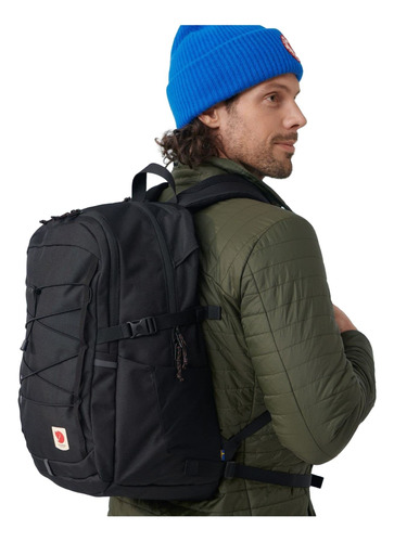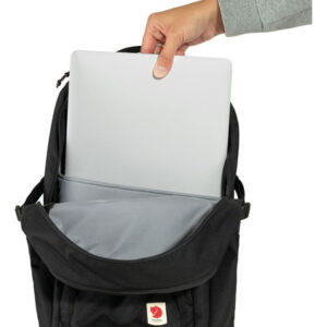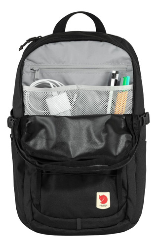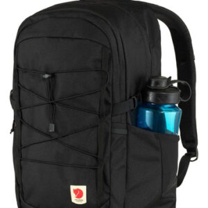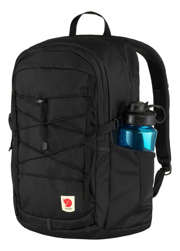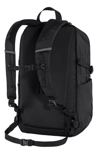 Mochila feminina Skule 28 da Fjallraven, preta, tamanho único — Tecido: lona — Alças laterais e superiores, compartimento para laptop de 15" — Comprimento: 11,75 pol/30 cm, altura: 19 pol/48 cm, profundidade: 5,5 pol/14 cm — Fecho de zíper — bolsos externos com zíper, bolsos internos com zíper e malha