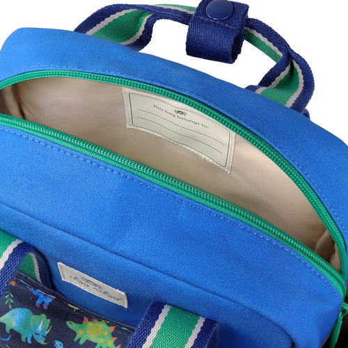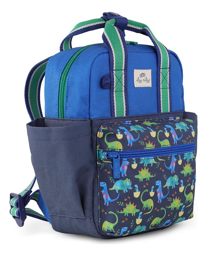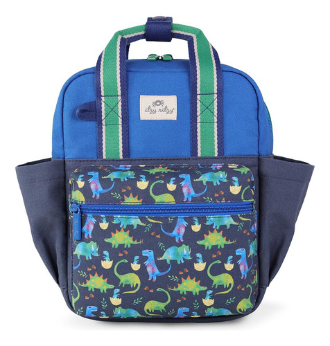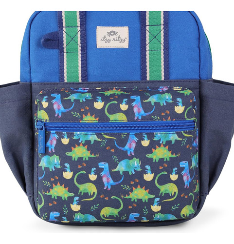 Mochila infantil Itzy Ritzy — Possui alças de ombro ajustáveis, 2 bolsos laterais e interior espaçoso com forro de tecido limpável e etiqueta de nome, dinossauro azul — ESPAÇOSA E FÁCIL DE LIMPAR: esta mochila infantil possui um interior espaçoso e lavável para facilitar a limpeza e um exterior de algodão resistente para maior durabilidade. Tem uma etiqueta interna que garante que sua bolsa nunca se perca na creche ou durante a viagem. Além disso, um prático laço lateral permite que seu filho personalize sua bolsa com clipes, pingentes ou seus brinquedos favoritos! – PERTENCES CONFORTÁVEIS E SEGUROS: as alças ajustáveis de nossa mochila para crianças pequenas oferecem um ajuste confortável e personalizado para ombros pequenos. As alças superiores se encaixam para facilitar o transporte, e o bolso frontal grande com zíper mantém os brinquedos favoritos seguros. – ESTAÇÃO DE HIDRATAÇÃO: mantenha seu filho revigorado durante todo o dia com os dois bolsos laterais de tamanho generoso de nossa mochila infantil, projetados para acomodar garrafas de água e copos com canudinho, garantindo que a hidratação esteja sempre ao alcance, onde quer que o dia os leve. – ACESSIBILIDADE RÁPIDA: A frente de nosso bebê a mochila de viagem possui um grande bolso com zíper, oferecendo fácil acesso a lanches, brinquedos ou qualquer outro item que seu filho possa precisa ter pressa, o que a torna perfeita para dias agitados fora de casa. – EXPLORAÇÃO INDEPENDENTE COM ESTILO: esta adorável mochila foi projetada especificamente para crianças pequenas em trânsito, incentivando a independência e a sensação de aventura. Seu filho viajará com estilo com uma mochila funcional e divertida. É um presente perfeito para aniversários, feriados ou apenas porque!