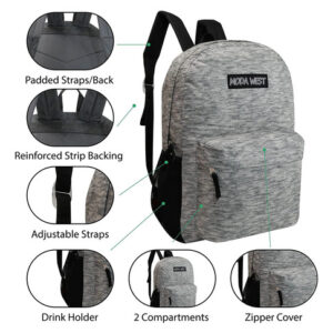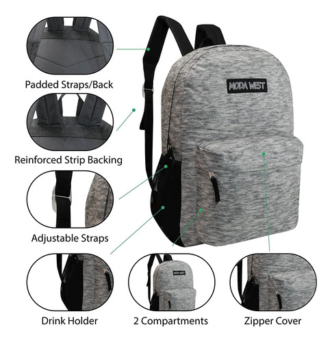 Comece o próximo ano letivo com estilo com estas mochilas clássicas de 17" em preto que incluem alças acolchoadas ajustáveis e um grande compartimento principal com zíper duplo equipado com muito espaço. Esta mochila é perfeita para adultos e estudantes de todas as idades. Por que comprar no varejo quando você pode comprar no atacado? Cada estojo vem com 24 mochilas. Uma ótima solução para projetos que exigem um grande número de mochilas, permitindo que você amplie seu orçamento. Essas mochilas estilosas com certeza serão o sucesso. Quadro padrão 17. A estrutura padrão desta mochila a torna perfeita para estudantes do ensino fundamental, médio, médio e adultos, com muito espaço para livros didáticos, cadernos e suprimentos. Cada estojo contém 24 mochilas. Não recomendado para crianças menores de 3 anos. – PACOTE ECONÔMICO – Por que comprar suas bolsas de livros individualmente no varejo quando você pode comprar no atacado? Aproveite ao máximo seu orçamento comprando essas mochilas para crianças a granel. – Brindes promocionais – Perfeitos para viagens de volta às aulas ou como produtos promocionais; esta embalagem múltipla é conveniente para empresas ou grupos sem fins lucrativos, como instituições de caridade, igrejas, escolas ou agências governamentais. – Design clássico – Um design limpo e atemporal que certamente permanecerá na moda, alças acolchoadas ajustáveis, um compartimento principal grande com zíper duplo equipado com um capa com zíper sobreposta, bolso frontal com zíper e bolsos laterais de malha para sua garrafa de água. – PADRÃO 17 – Este A estrutura padrão das mochilas as torna perfeitas para estudantes do ensino fundamental, médio e até mesmo do ensino fundamental, com muito espaço para livros didáticos, cadernos e suprimentos. As alças acolchoadas ajustáveis acomodam uma ampla variedade de idades. – RESISTENTES – Essas bolsas de livros premium são feitas para durar, muito mais resistentes do que as concorrentes básicas. A costura reforçada por toda parte evita rasgos. Recomendado para maiores de 3 anos.