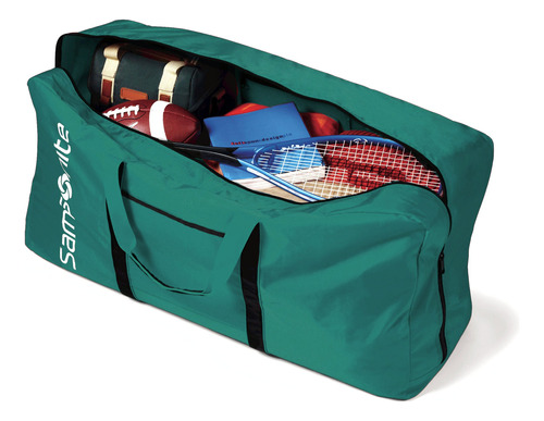 Mochila Samsonite, turquesa, individual — Excelente qualidade: feita de material leve e superdurável de nylon 400 Denier e lavável à mão — Compartimento principal espaçoso e bolso interno com zíper para itens pequenos — Conveniente de transportar e dobrável: esta mochila de náilon com alças bicolores, logotipo estampado na frente e dobrável para facilitar o armazenamento — Versátil: perfeita para usar como bolsa de ginástica leve, bolsa de ginástica, bolsa para sapatos, bolsa esportiva, bolsa de viagem, mochila, bolsa de transporte, bolsa de avião para transportar todos os seus equipamentos. Ótima para crianças: para um acampamento de verão, estudantes indo para a faculdade, guardando brinquedos ou para qualquer outra pessoa indo a qualquer lugar – Dimensões gerais: 33" x 17" x 11,5 polegadas, Peso: 1 libra – Bolso interno com zíper para itens pequenos – Dobrável para facilitar o armazenamento