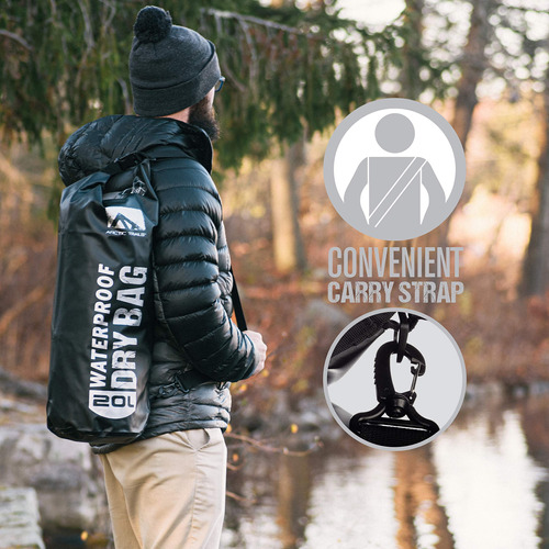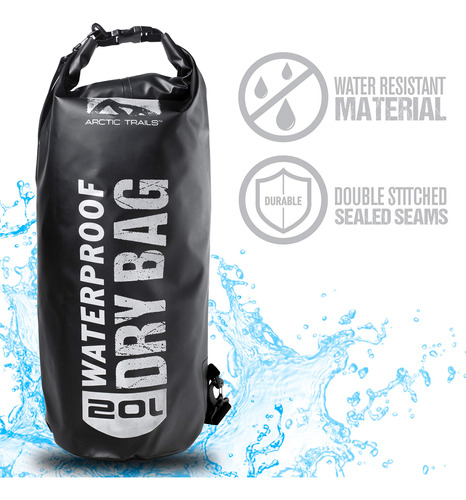A mochila impermeável ARCTIC TRAILS é essencial para todas as aventuras ao ar livre, seja para caminhadas, caiaque, rafting ou um dia de barco ou praia. A última coisa com que você quer se preocupar é que suas coisas fiquem encharcadas ou estragadas. Nossos sacos secos são feitos de PVC resistente que aguenta os elementos mais difíceis! Nossa mochila seca possui elásticos adicionais para armazenamento adicional na parte externa de sua bolsa seca. Para garantir que seus itens permaneçam secos, basta colocar seus objetos de valor dentro da bolsa, enrolar a parte superior e fechar o clipe. O saco seco é oferecido em uma variedade de tamanhos 10L, 20L, 30L.