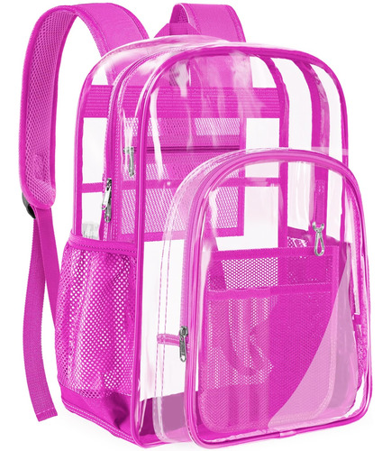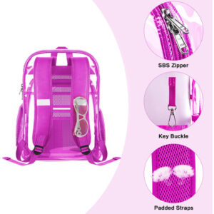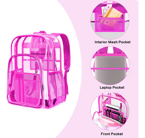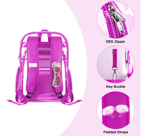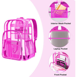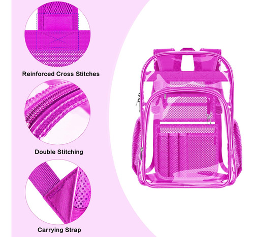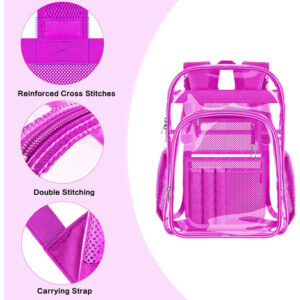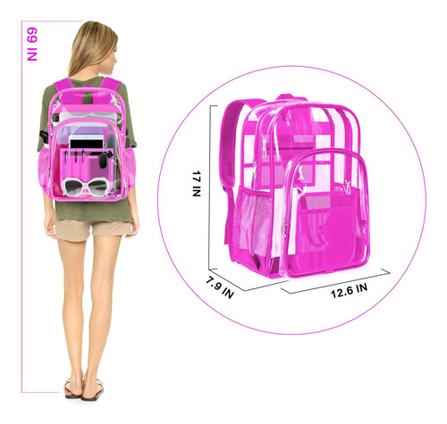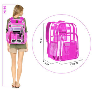Esta mochila transparente resistente é muito grande e pode acomodar muitas necessidades diárias de que você precisa. É muito adequado para trabalho, faculdade, viagens, praia e assim por diante. – GRANDE CAPACIDADE E MULTIFUNCIONAL: Dimensões 12,6" x 7,9" x 17" (C x L x A), é espaçoso o suficiente para as necessidades diárias. 1 compartimento principal grande com compartimento para laptop, 1 x pequeno bolso de malha dentro do compartimento principal para telefones ou cartões, 1 x compartimento frontal com canetas, bolso para iPad e fivela de chave, 2 x bolsas laterais para garrafa de água e guarda-chuva. – MATERIAIS SUPERIORES: Esta mochila transparente resistente é feita de material de PVC macio de 0,5 mm e fibra oxford durável que pode ser facilmente dobrada e não rachar em climas frios. O corpo construído da mochila é de plástico transparente, impermeável e flexível. A parte inferior do tecido oxford é resistente e resistente a arranhões. – Alças acolchoadas reforçadas e fitas refletivas: as alças acolchoadas têm 2,6" de largura para uso confortável e aliviam o estresse nos ombros, reforçadas com pontos cruzados duplos para evitar rasgos e cada alça tem uma fita refletiva para segurança à noite. – Adequada para várias ocasiões: esta mochila transparente pode ser carregada em faculdades e locais de trabalho para verificação rápida e fácil acesso, pois está em conformidade com os requisitos da política de bolsas transparentes. Também é perfeita para viagens, aeroportos e instituições correcionais. – PRESENTES PRÁTICOS: Esta mochila transparente é um excelente presente prático para amigos e colegas que precisam dela, ajudando-os a armazenar e acessar seus itens rapidamente. Pode ser presenteado em aniversários e outros grandes dias.