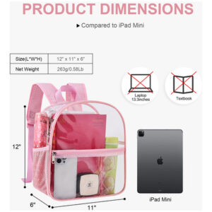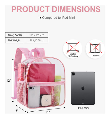 Mochila transparente USPECLARE aprovada pelo estádio em 12612, bolsa transparente à prova d'água para concertos e eventos esportivos – Tamanho aprovado pelo estádio. Tamanho perfeito para eventos em estádios – 12" A x 11" L x 6" W, atende à política de bolsas transparentes de não mais que 12* 12* 6 polegadas, tornando-a aprovada por estádios, shows e eventos esportivos. – Economiza tempo e é conveniente. A mochila transparente permite visibilidade total em todos os lugares. Passe segurança com a mochila transparente para evitar ser rejeitado nos postos de controle de segurança, e é conveniente verificar se você tem tudo o que precisa antes saindo. – Design confortável As alças ajustáveis acolchoadas reforçadas oferecem conforto macio para uso durante todo o dia. A alça superior é conveniente sempre que você quiser carregar sua bolsa. O design elegante o torna um ótimo acessório para caber em sua roupa e multicolorido para você escolher. – Material durável Feita de material de PVC pesado que é espesso, impermeável, resistente e bem feito, nossa mochila transparente pode garantir durabilidade duradoura. NOTA: Não a mergulhe na água nem a exponha à chuva forte para evitar que a água passe pelo zíper. – Uso multiuso. A mochila pequena e transparente aprovada pelo estádio atende perfeitamente aos requisitos de shows, festivais, verificações de segurança, eventos esportivos, escolas, trabalho, aeroportos, etc. O design elegante é adequado para meninas e mulheres. Também é um ótimo presente para familiares e amigos. Idade recomendadaO item é adequado para pessoas com mais de 4 anos de idade.