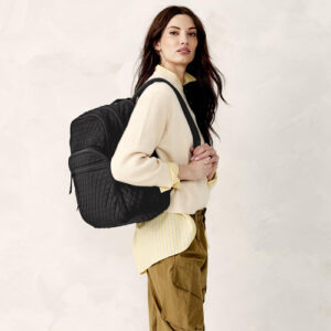 Mochila feminina grande Bancroft de algodão Vera Bradley, Moonless Night, tamanho único — GABARDINA DE ALGODÃO — Feito com algodão de alta densidade e fibras de algodão natural de alta densidade, nosso algodão lavável oferece um toque luxuoso que rejuvenesce a experiência macia, confortável e vibrante que você lembra desde o início; forro de algodão — TAMANHO — Este estilo mede 17 polegadas de altura, 12 polegadas de largura e 8 polegadas de profundidade; possui uma alça ajustável de 35 polegadas e 2 polegadas Alça dobrável; acomoda um laptop de até 15 polegadas – DETALHES – O exterior inclui três compartimentos com zíper e um zíper frontal bolso, bolso com zíper para laptop e capa de carrinho; o compartimento frontal com zíper tem quatro bolsos deslizantes e uma caneta; o compartimento frontal tem dois bolsos deslizantes e um bolso com zíper; fechos com zíper — CUIDADO — Lavar à máquina com água fria com cores semelhantes, ciclo delicado, usar somente alvejante sem cloro quando necessário; secar no varal