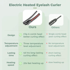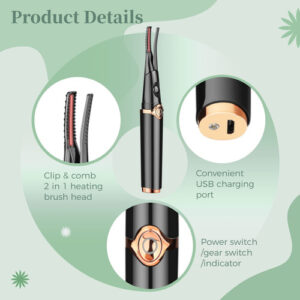 Descrição do modelador de cílios elétrico: Fonte de alimentação: Bateria embutida de 350mAh/cabo USB Tempo de pré-aquecimento: 20 segundos (30s) será melhor Tempo de carregamento: 1-2 horas Corrente de carregamento: 350mA 3 equipamentos de temperatura: 60 (140) /70 (158) /80 (176) Luz indicadora: baixa temperatura 60 – azul; temperatura média 70 – roxo; alta temperatura 80 – vermelho Cor do produto: preto Cílios recarregáveis material: plástico ABS (acrilonitrila butadieno estireno) Tamanho do modelador de cílios elétrico: L* W* H: 2* 1,8* 15 cm (0,79* 0,71* 5,91 pol.) O pacote inclui: 1 x modelador de cílios aquecido 1 x cabo USB Nota: – Por favor, consulte as medidas. Pequenos erros de medição são permitidos na faixa normal. – Pode haver uma pequena diferença de cor devido ao monitor, câmera ou outros fatores. Consulte o item físico. O pacote inclui 1 modelador de cílios aquecido 1 cabo USB – Obtenha cílios enrolados facilmente: você ainda enrola seus cílios com um modelador de cílios tradicional? Costuma cortar os cílios ou machucar as pálpebras ao usar um modelador de cílios? Por que não experimentar nosso modelador de cílios aquecido à prova de escaldamento rápido e à prova de escaldamento! Ele aquece rapidamente e mantém os cílios curvados por até 48 horas, enquanto o design inteligente à prova de escaldamento evita danificar os cílios ou machucar a pele durante o uso. – Clipe e pente para cílios 2 em 1: este modelador de cílios aquecido combina um clipe de cílios com um pente de cílios embutido. A cabeça da escova com clipe pode ser usada para usar cílios postiços e enrolá-los com cílios reais, e a cabeça da escova em pente serve para pentear os cílios e manter as curvas perfeitas. Além disso, a cabeça da escova de aquecimento adota um design curvo, que se ajusta perfeitamente à curva dos cílios e facilita a curvatura dos cílios. – Ondulação rápida e sem escaldamento nas pálpebras: o material de aquecimento de alta qualidade pode pré-aquecer rapidamente em pouco tempo, e leva apenas 60 anos para fazer com que seus cílios tenham curvas encantadoras. O design da ranhura de proteção à prova de escaldamento aumenta a distância entre o fio de aquecimento e a pálpebra, para evitar que suas pálpebras se machuquem ao usar o modelador de cílios aquecido. – Ajuste de temperatura em três níveis: nosso modelador de cílios suporta ajuste de temperatura em três níveis, para que cílios reais e cílios postiços de qualquer dureza possam ser facilmente enrolados. A baixa temperatura 60 está acesa com luz azul, adequada para cílios macios próximos aos cantos dos olhos, luz roxa de temperatura média para cílios macios e curtos e luz vermelha 80 de alta temperatura para cílios grossos e duros. – Design conveniente de carregamento USB: projetado com interface de carregamento USB conveniente, este modelador elétrico de cílios suporta vários métodos de carregamento, como porta USB de carro, banco de energia, notebook, adaptador de alimentação e assim por diante. O design fino e compacto facilita a colocação em uma bolsa ou bolsa de maquiagem, tornando-o perfeito para qualquer lugar, para que você possa ter uma linda maquiagem para os olhos a qualquer hora e em qualquer lugar.