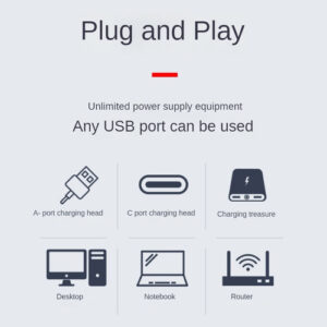 use qualquer porta USB, e o terminal de entrada é uma porta fêmea -C, perfeitamente compatível com carregadores de porta -C (PD). Qualquer porta USB pode ser usada como dispositivo de fonte de alimentação, carregamento/banco de energia/PC/notebook/roteador/NAS, etc. Projetada para regulação de tensão de pequenos dispositivos alimentados por USB, a saída é uma porta USB A fêmea.