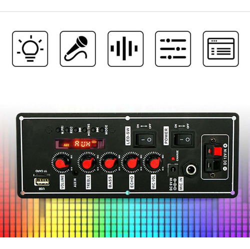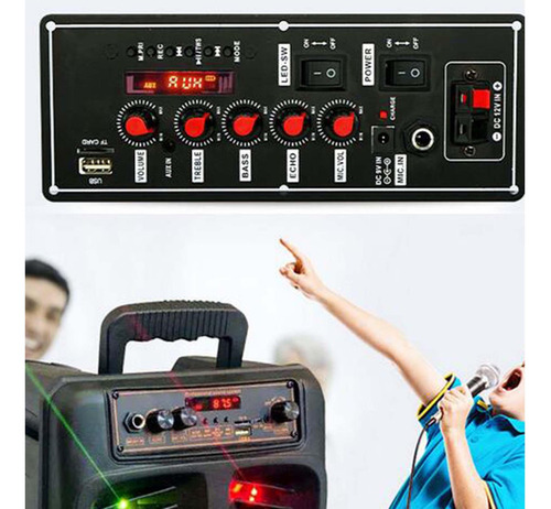 [Fácil de operar]: placa de amplificador de á, seis botões, MODE/PREV/SCAN/NEXT/REC/MIC; Com reverberação, botão de ajuste de e graves, com botão de volume do microfone
