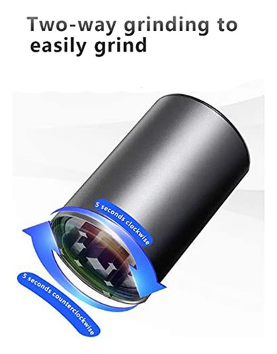 Cor: preto Material: liga de alumínio Tamanho: 52x52x114mm Conteúdo da embalagem: 1x moedor inteligente 1x cabo USB 1x limpeza
