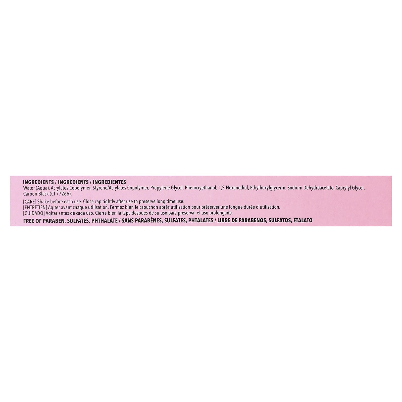 Água (aqua), acrylates copolymer, styrene/acrylates copolymer, propilenoglicol, fenoxietanol, 1,2-hexanediol, ethylhexylglycerin, sodium dehydroacetate, caprylyl glycol, preto de carbono (CI 77266).