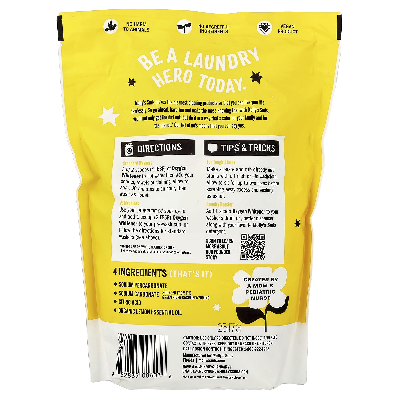 Mollys Suds Branqueador de Oxigênio Limão 115 kg (4109 oz) – Molly’s Suds Casa Limpeza Produtos para lavanderia Sabão para roupas.