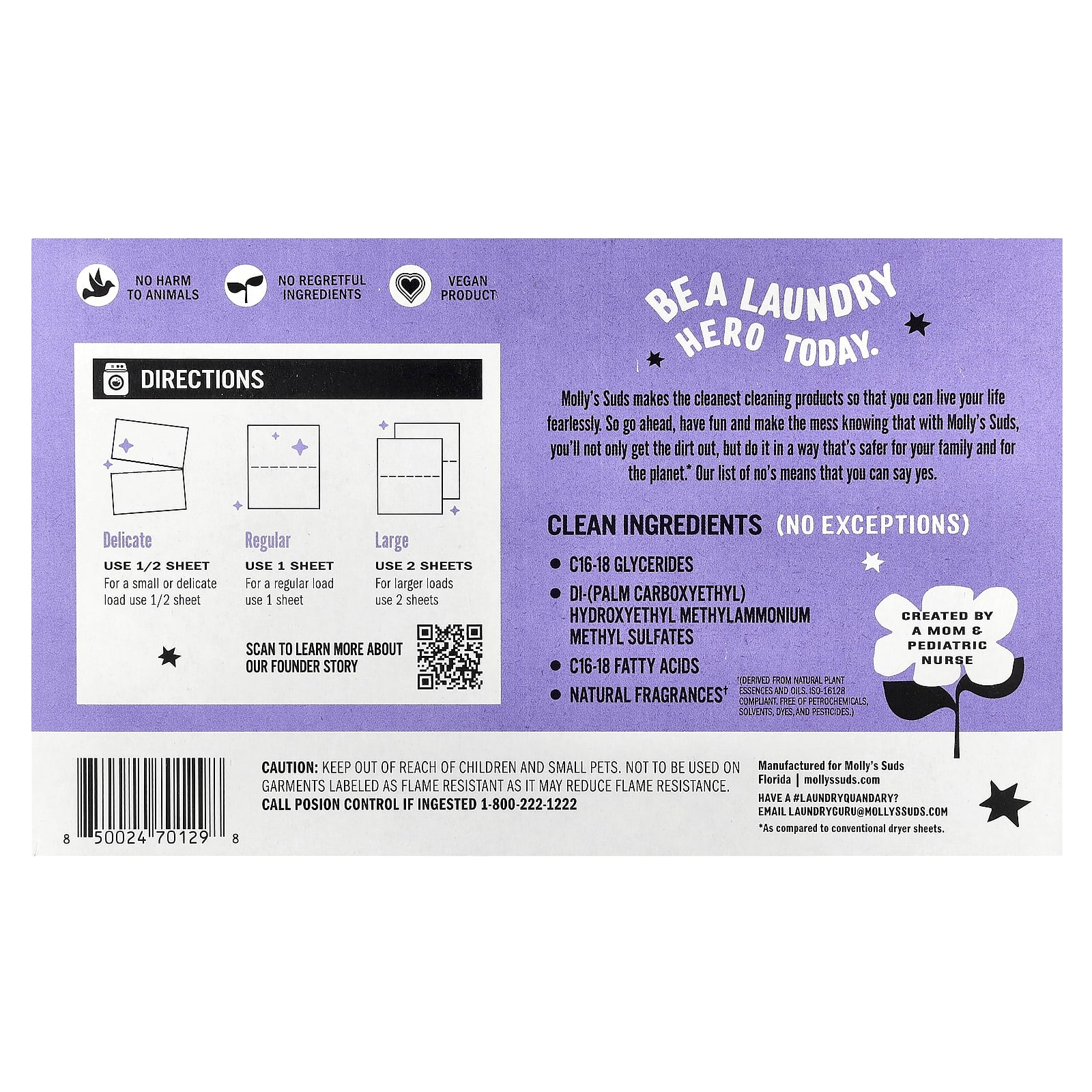 Mollys Suds Folhas de Secador Lavanda 120 Folhas – Molly’s Suds Casa Limpeza Produtos para lavanderia Amaciantes de Roupas e Lenços para Secadora.