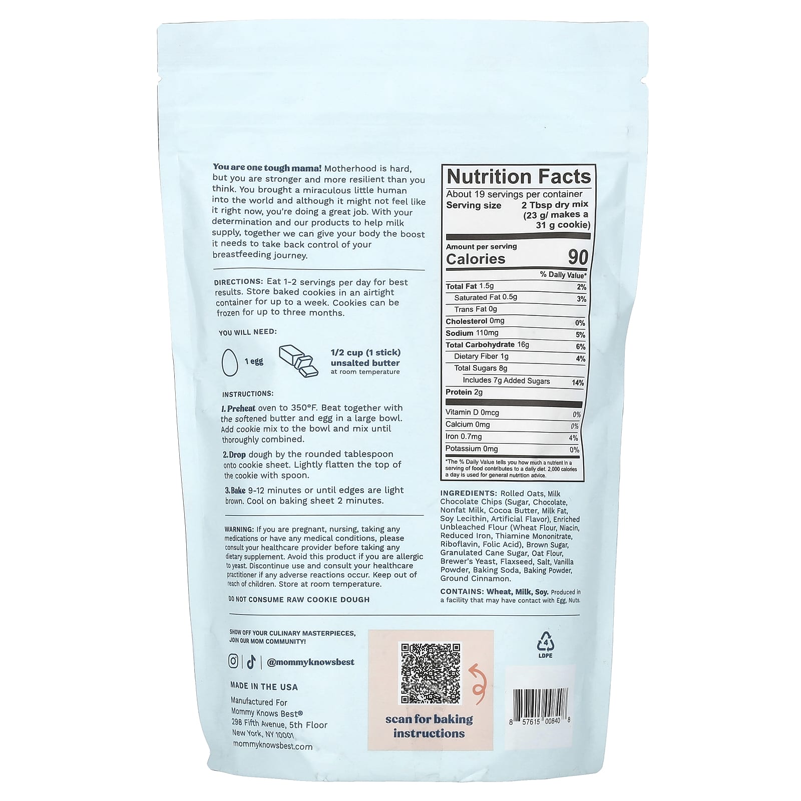Mommy Knows Best Mistura para Cookies de Lactação Gotas de Chocolate e Aveia 425 g (15 oz) – Mommy Knows Best Alimentos Fermentos, farinhas e misturas Mistura de ingredientes para cookies Bebês e Crianças Mamães e Maternidade Amamentação Lactation Support.