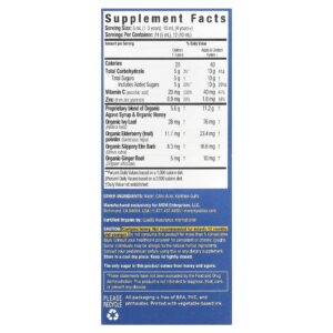Contém mel, não recomendado para bebês de 12 meses. Não consuma este produto por mais de 5 dias consecutivos. Consulte seu profissional de saúde quanto a tosse persistente ou crônica. Alguns indivíduos podem ser alérgicos aos ingredientes naturais à base de ervas. Consulte seu pediatra antes de usar este ou qualquer suplemento.