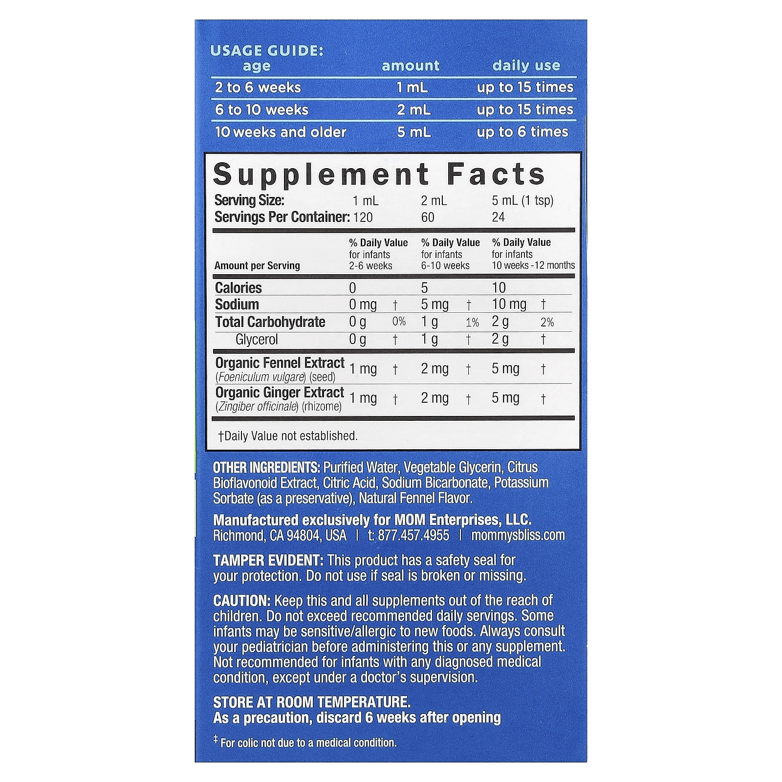 Vire o frasco e puxe a seringa até chegar ao volume correto. O bebê deve estar na posição vertical. Não administre se o bebê estiver chorando. Administre lentamente, algumas gotas de cada vez, permitindo que o bebê engula cada gota. Dispense lentamente em direção à lateral da boca/parte interna da bochecha. Use a seringa fornecida ou um conta-gotas, ou coloque a quantidade medida em uma mamadeira de fluxo lento. Não misture com fórmula nem leite materno. Não administre junto com a amamentação. Não dê a bebês que tenham menos de 2 semanas ou que pesem menos de 7 libras.