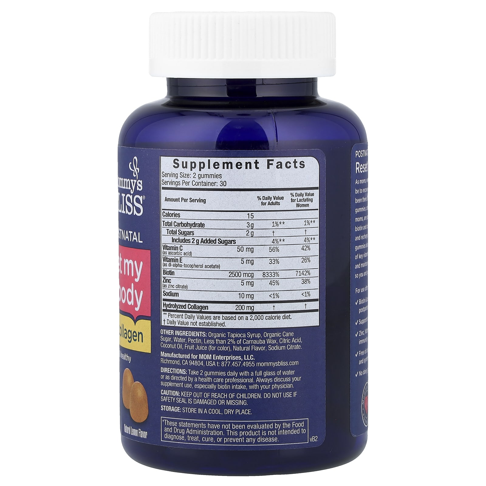 Mommys Bliss Pós-natal Redefinição do Corpo Com Biotina e Colágeno Sabor Limão Natural 60 Gomas – Mommy’s Bliss Bebês e Crianças Mamães e Maternidade Suplementos Pós-parto.