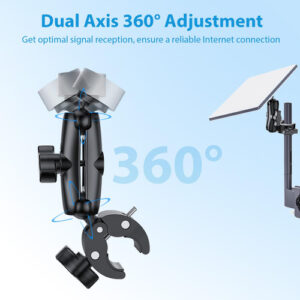 O Starlink Mini Mount é uma solução de montagem versátil e ajustável para o seu dispositivo Starlink. Este suporte para trailer se conecta com segurança a escadas, trilhos, postes e muito mais, garantindo uma instalação estável e segura. O mecanismo de ajuste de eixo duplo permite que você otimize facilmente o ângulo do seu Starlink para uma recepção ideal do sinal, garantindo conectividade confiável à Internet em qualquer ambiente. Compacto e portátil, este suporte é perfeito para atividades ao ar livre e viagens, permitindo que você configure seu Starlink onde quer que vá. Construída com materiais de alta qualidade, a braçadeira e a estrutura de montagem oferecem excelente durabilidade e estabilidade, resistindo a condições climáticas adversas e ao uso frequente. Projetado especificamente para compatibilidade com o adaptador de tubo original do Starlink, este suporte de 4ª geração oferece a melhor experiência de instalação e proteção do dispositivo. – Ampla gama de aplicações: projetado para Starlink Mini, este suporte de braçadeira ajustável é usado para fixar dispositivos Starlink Mini em vários postes em trailers, iates, campistas, caminhões, escadas, trilhos, etc. Garante a estabilidade e a segurança dos dispositivos Starlink Mini. – Braçadeira ajustável: O suporte possui um mecanismo de fixação robusto e ajustável que o mantém firmemente em uma superfície e evita que a unidade sendo desalojado acidentalmente. Adequado para postes de 0,6-1,56", ele pode ser montado com segurança nos trilhos do teto de uma van ou nas escadas verticais de uma caravana. – Ajuste de eixo duplo: o suporte inclui um mecanismo duplo de ajuste universal que permite ao usuário ajustar livremente o ângulo do dispositivo Starlink Mini (até 360 graus) para uma ótima recepção de sinal em qualquer ambiente, garantindo uma conexão confiável à Internet. – Compacto e portátil: o suporte é um kit compacto e portátil que se encaixa cabe facilmente em uma mochila, tornando-a ideal para atividades ao ar livre e viagens. – Projetada para atividades extremas ambientes: o suporte é feito de liga de alumínio e liga de plástico, o que oferece excelente durabilidade e estabilidade, mantendo o mini equipamento starlink estável mesmo ao dirigir em alta velocidade em ventos fortes e chuva. A excelente resistência à corrosão e ferrugem torna o produto resistente a condições climáticas adversas e ao uso frequente.