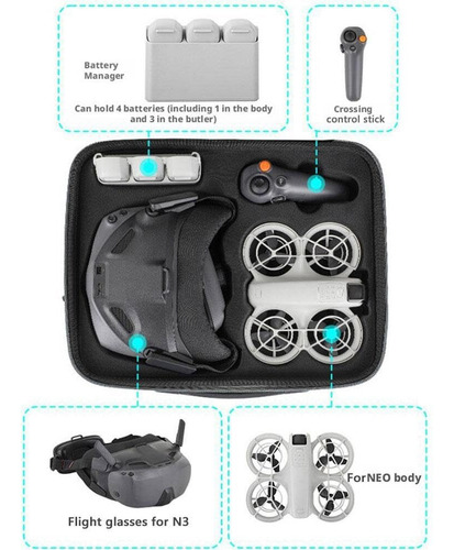 — Estojo Neo Goggles N3: O estojo de viagem portátil foi projetado especificamente para DJI Neo motion fly mais acessórios combinados, compatível com Goggles N3.