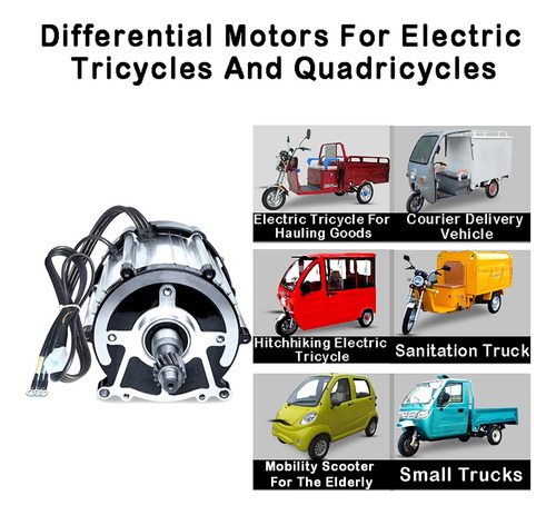 Ampla aplicação: Este motor de 5 furos e 16 dentes é adequado para triciclos elétricos, caminhões de entrega de correio, caminhões de saneamento, veículos elétricos totalmente fechados, pequenos caminhões de tração, scooters de mobilidade para idosos, veículos convertidos, equipamentos elétricos, etc.