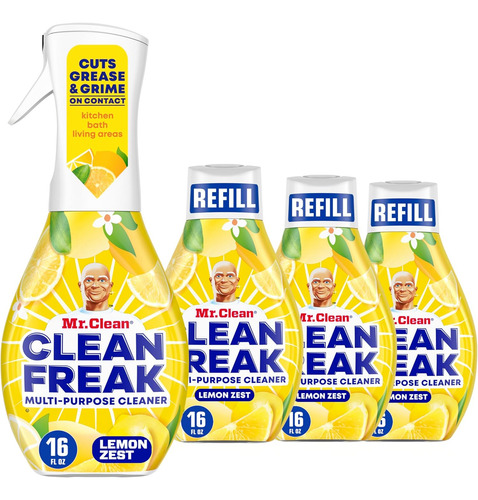 3 frascos de recarga de 16 fl oz. Três vezes o poder de limpeza (versus o principal spray alvejante multiuso na graxa de cozinha). A