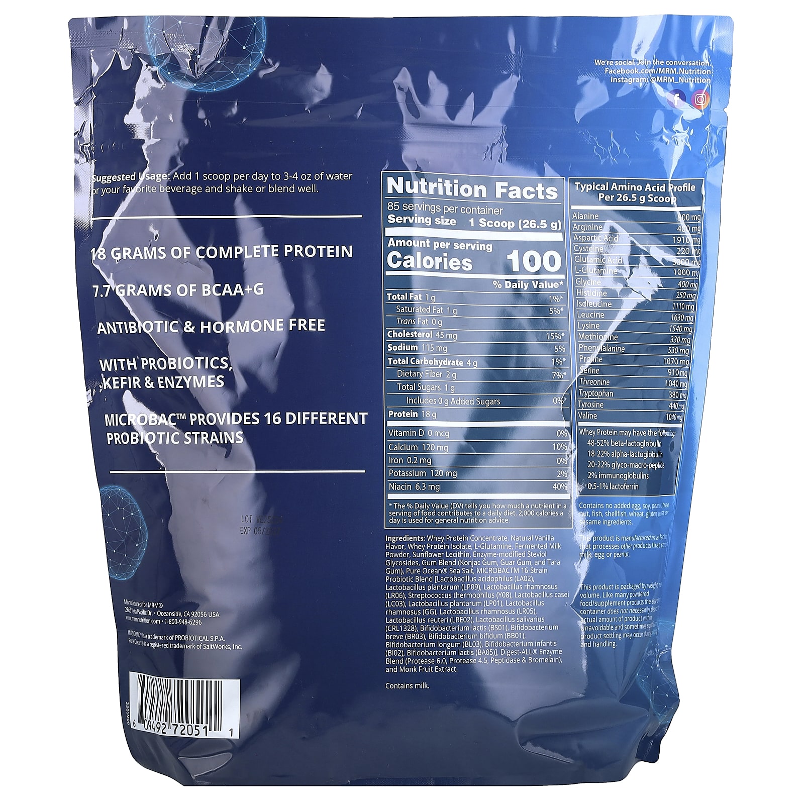 MRM Nutrition Proteína Whey com Probióticos e Pós-bióticos Baunilha 2.270 g (801 oz) – MRM Nutrition Nutrição Esportiva Proteína Proteína Whey Misturas de Proteína de Whey.