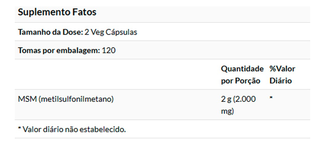 1. Suporte Confiável para Uso Diário: O MSM 1000mg da Now Foods é formulado para oferecer um suporte confiável, tornando-se uma adição valiosa ao seu dia a dia.