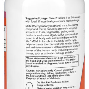 2. Forma Prática: Apresentado em comprimidos de 1500mg, o MSM da Now Foods oferece uma maneira conveniente de incorporar à rotina diária.