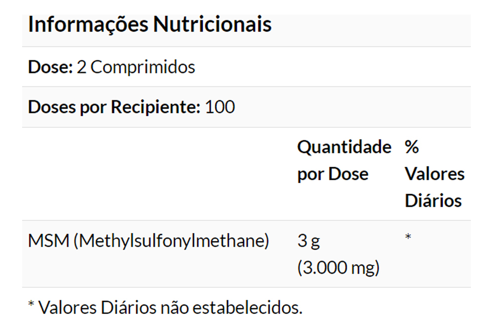 Suporte Principal: O MSM (Metilsulfonilmetano) é um composto orgânico de enxofre que contribui para a sensação de bem-estar, atuando como suporte essencial.