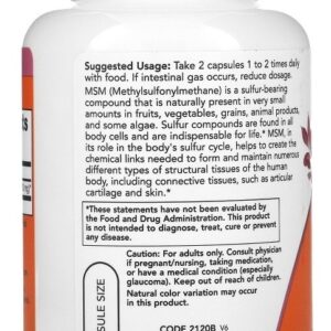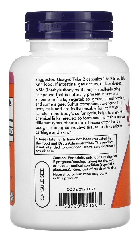 O MSM (Metilsulfonilmetano) é um composto que contém enxofre, naturalmente presente em pequenas quantidades em frutas, vegetais, grãos, produtos de origem animal e algumas algas. Os compostos de enxofre são essenciais para todas as células do corpo e são indispensáveis para a vida. O MSM ajuda a criar os elos químicos necessários para formar e manter diversos tipos de tecidos estruturais do corpo humano, incluindo tecidos conjuntivos como cartilagem articular e pele.