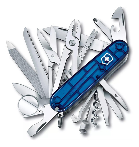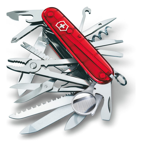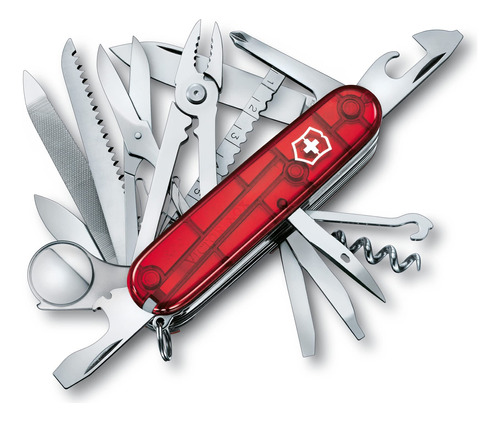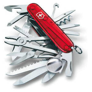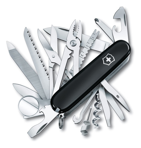 Victorinox Swiss Army Swiss Champ Pocket Knife (Black), 91mm – Features 33 functions to equip you for everyday adventures – including 2.45 large blade, scissors, bottle opener with large screwdriver, pliers, and corkscrew (See product description for full list of features) – Stainless steel construction encased in polished black ABS scales provides sleek durability – With 33 functions, the SwissChamp is a toolbox for your pocket thats ready for everything from household quick fixes to the wilds of nature – Length: 3.58 (91mm), Height: 1.3, Weight: 6.526 oz. – Made in Switzerland; Victorinox provides a lifetime guarantee against defects in material and workmanship – Sport type: Camping & Hiking