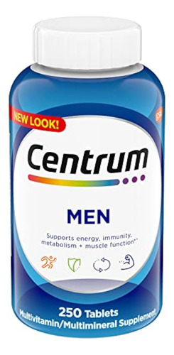 Centrum Multivitamínico para hombres, suplemento multivitamínico/multimineral con vitamina D3, vitaminas B y antioxidantes, sin gluten, ingredientes sin OMG, 250 unidades