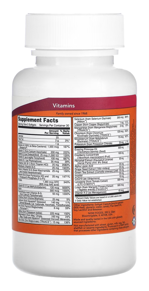 O Multivitamínico EVE para Mulher da Now Foods é um suplemento completo especialmente formulado para mulheres, que contém uma combinação de vitaminas, minerais e outros nutrientes essenciais para apoiar as suas necessidades nutricionais diárias;