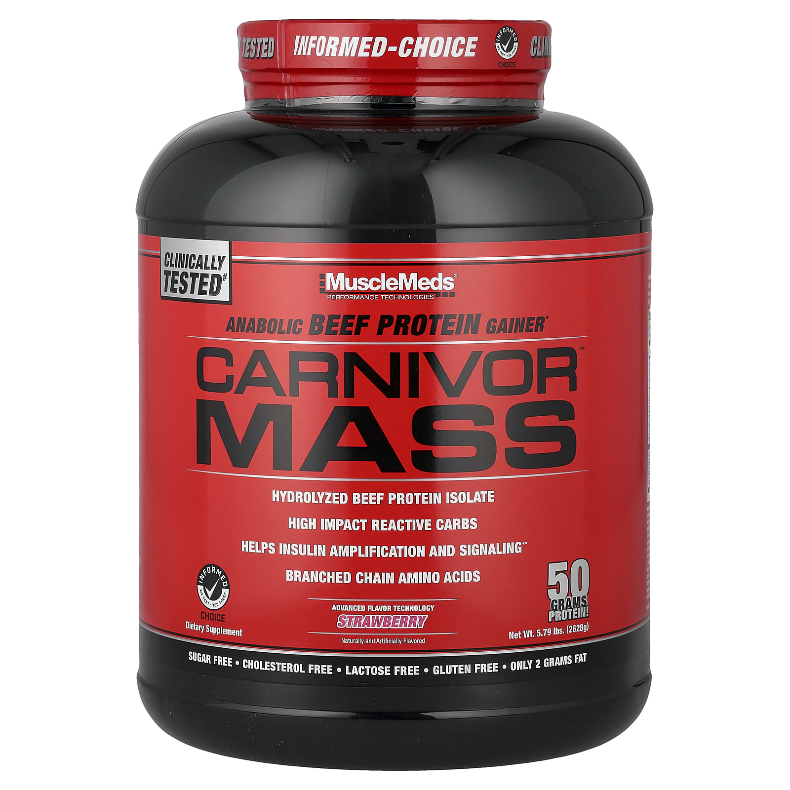 MuscleMeds Carnivor Mass Ganho de Proteína Anabólica de Carne Morango 2.698 g (579 lb) – MuscleMeds Nutrição Esportiva Proteína Ganhadores de Massa Saúde Alto em Proteína.