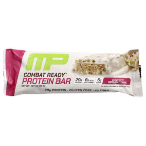 MusclePharm Barra de Proteína Combat Pronto™ Bolo de Aniversário de Confetes 4 Barras 53 g (187 oz) Cada – MusclePharm Nutrição Esportiva Barrinhas e snacks esportivos Barras de Proteína.
