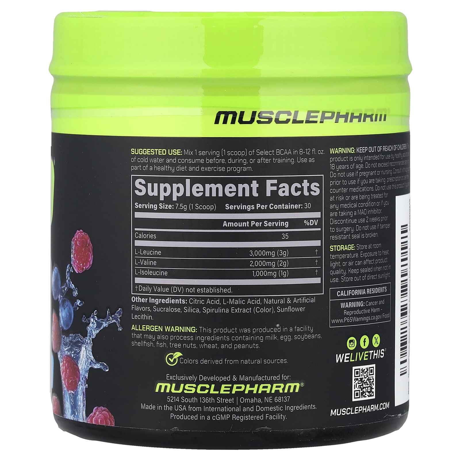 MusclePharm BCAA Select Framboesa Azul 225 g (79 oz) – MusclePharm Suplementos Aminoácidos BCAA.