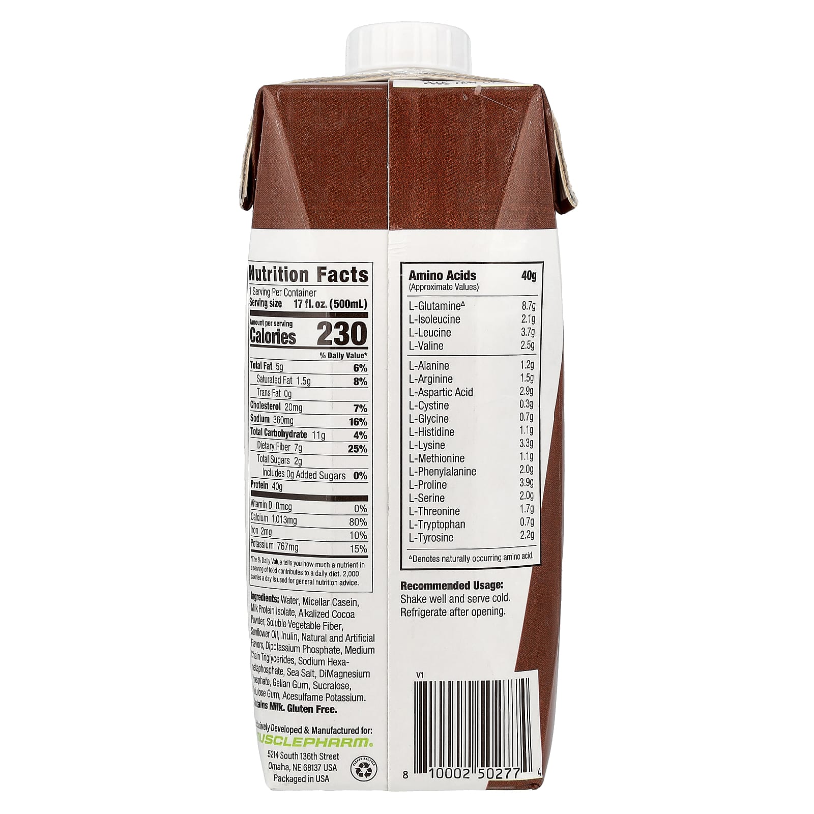Água, caseína micelar, isolado de proteína de leite, cacau em pó alcalinizado, fibra vegetal solúvel, óleo de girassol, inulina, Sabores naturais e artificiais, fosfato de dipotássio, aos triglicerídeos de cadeia média, hexametafosfato de sódio, sal marinho, fosfato de dimagnésio, goma gelana, sucralose, gomas de celulose, acessulfamo potássico