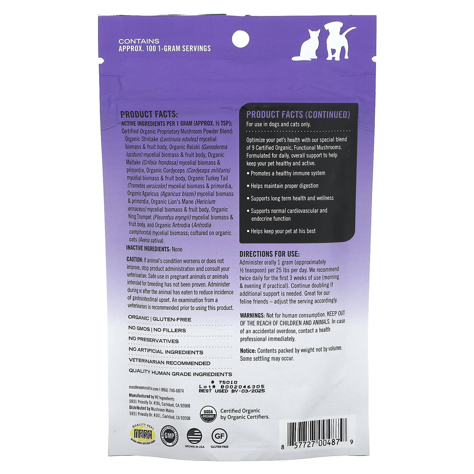 Mushroom Matrix Canine Healthy Pet Pó de Cogumelo Orgânico Certificado Para Animais de Estimação de 25 lb Para Cães e Gatos 100 g (35 oz) – Canine Matrix Pets Suplementos para pets Suplementos para cães Ervas para cães Suplementos para gatos.