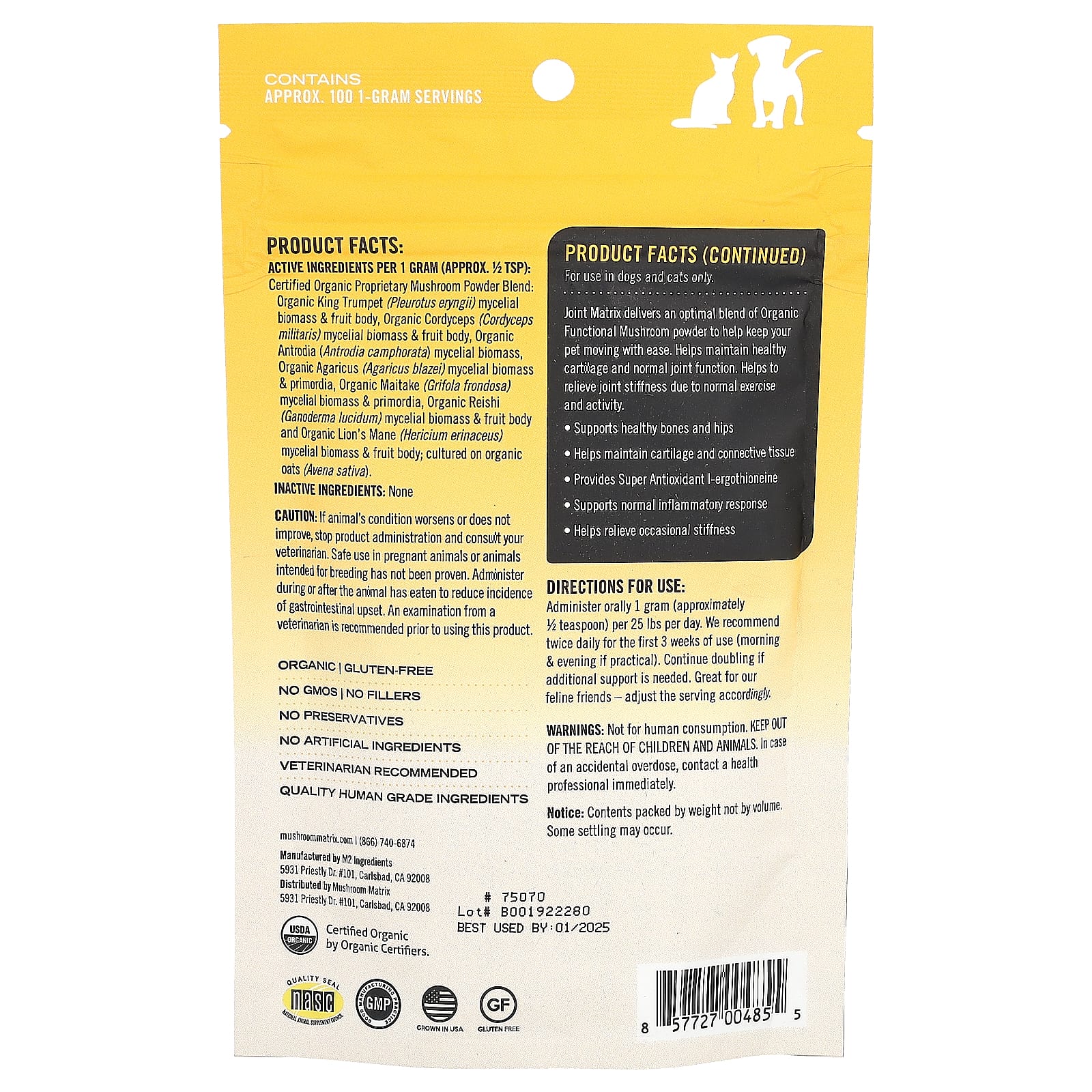 Mushroom Matrix Canine Joint Cogumelo Orgânico em Pó Certificado Para Animais de Estimação 25 lb Para Cães e Gatos 100 g (357 oz) – Canine Matrix Pets Suplementos para pets Suplementos para cães Ervas para cães Suplementos para gatos Apoio para quadril e articulações de gatos.