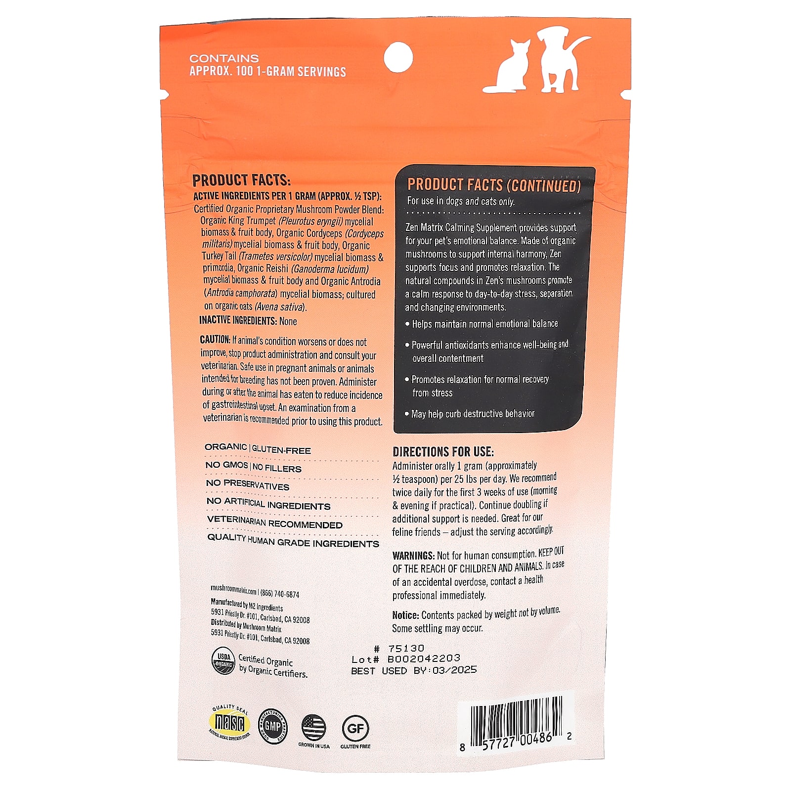 Mushroom Matrix Canine Zen Cogumelo Orgânico em Pó Para Animais de Estimação de 25 lb Para Cães e Gatos 100 g (35 oz) – Canine Matrix Pets Suplementos para pets Suplementos para cães Ervas para cães Suplementos para gatos.